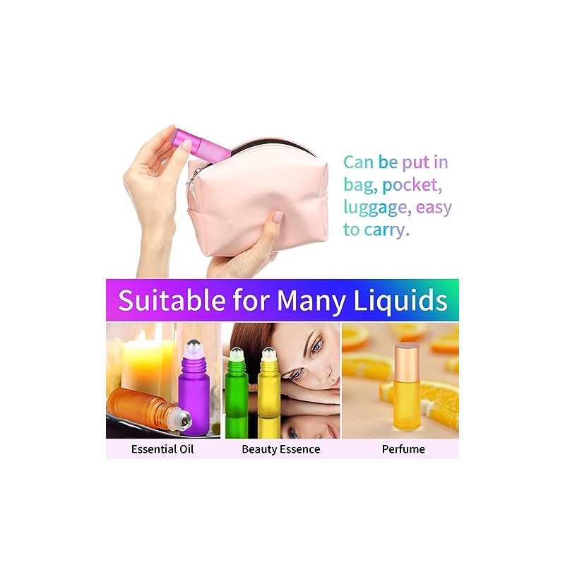 - 【8 SCHÖNE FARBEN】8 Stück 5 ml Roll On Flasche in verschiedene Farben: Rot, Rosa, Lila, Gelb, Grün, Blau, Orange und Dunkelblau, Exquisites Aussehen, auch mit 1 Stück Öffner, 3 Stück Tropfer und 1 Stück Trichter.