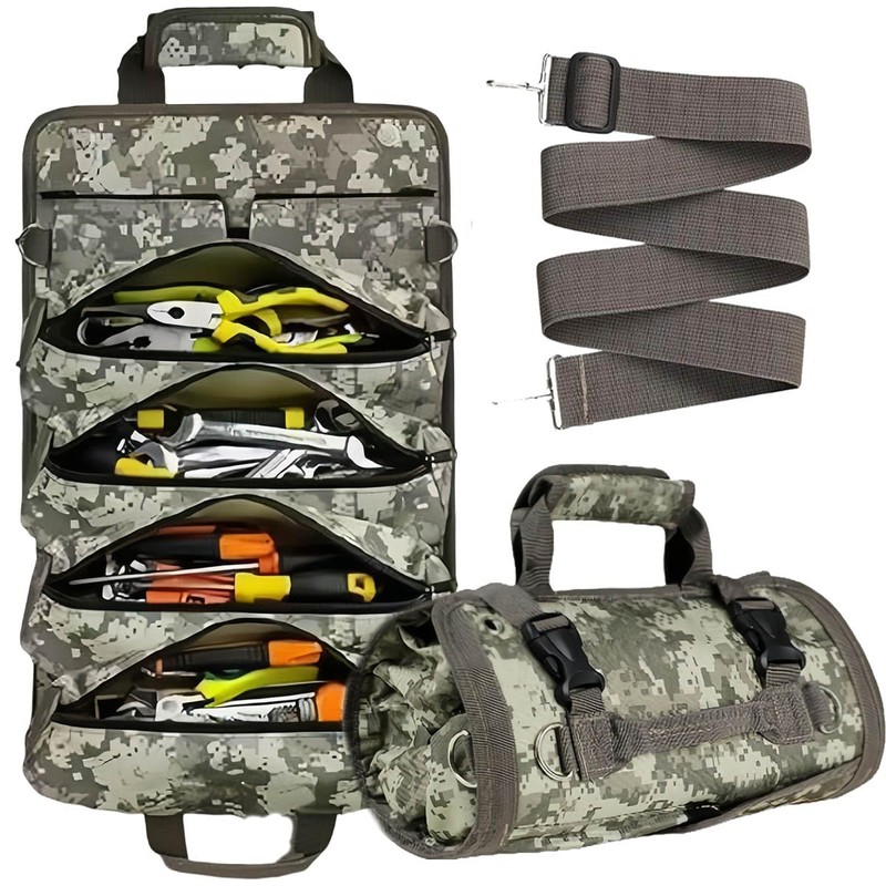 Roll Up Tool Bag, Heavy Duty Rolled Empty Portable Foldable Rolling Organizer with 2 Small Pockets, Rollable Carry Bag, Tool Bag, Father, Men, Mechanic (Camouflage)