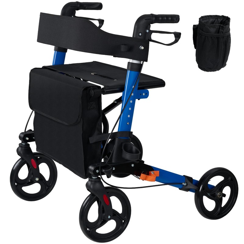 • Easy to Fold and Store: The rollator walker with seat can be easily folded for convenient transportation and storage. Simply lift the seat and pull up the folding lever to fold the walker. It can fit into the trunk of the car and most luggage compartments.