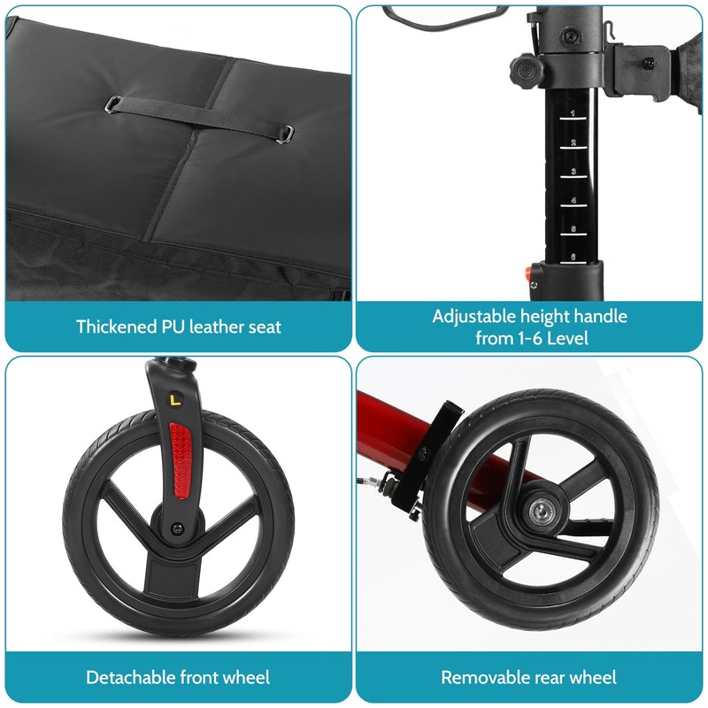 • Enhanced Comfort - Equipped with a specially designed Thickened PU leather seat, ergonomically designed to naturally conform to body curves and effectively distribute hip pressure. Additionally, our walker for seniors features a widened backrest design for enhanced support and comfort during travel