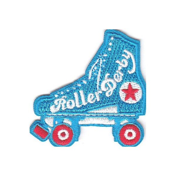 "ROLLER DERBY" PATCH w/SKATE- Iron On Embroidered Patch - Skates, Sports, Words