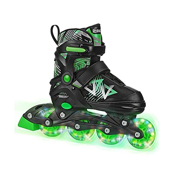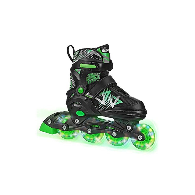 Roller Derby Stryde Youth Adjustable Inline Lighted Wheel Skates Small Black/Green