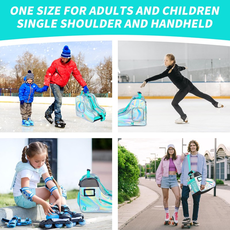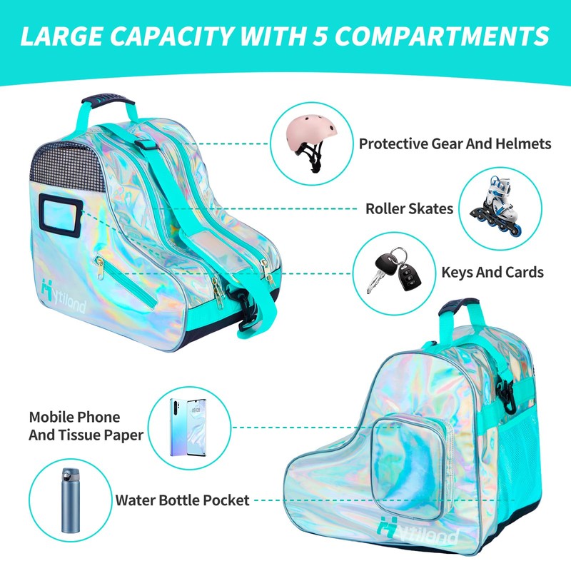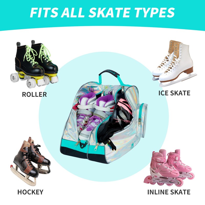 - Plain Holographic Style: Our eye-catching rainbow holographic style will make your roller skate bag the star of the rink. Skate bag for kids' also an good choice for those need a fashionable ice skate bag or roller skate bag. (up to size 13).