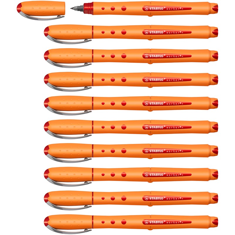 Rollerball - STABILO worker+ Fine - Box of 10 - Red
