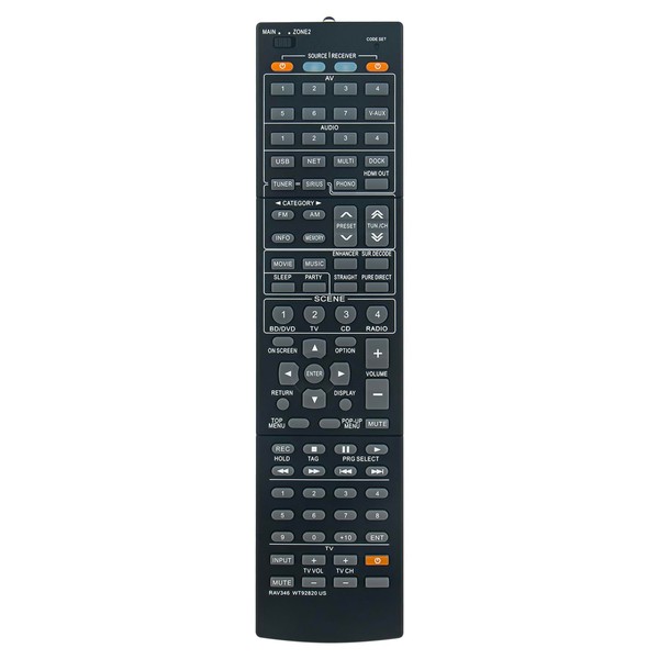 ROLLGAN RAV346 WT92820US Replacement Remote Control Applicable for Yamaha AV Audio Receiver Remote Control RAV346 WT928200 RX-A1000 RXA1000 with Code User Manual
