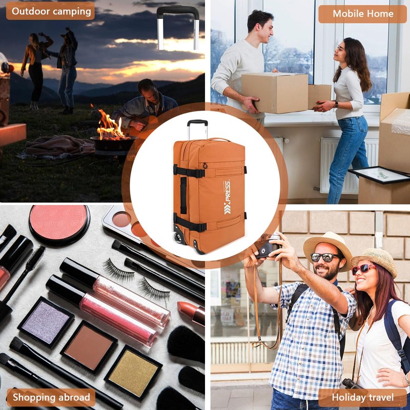 Rolling Duffle Bag with Wheels,3 In 1 Waterproof Travel Duffel Luggage with Rollers,Orange