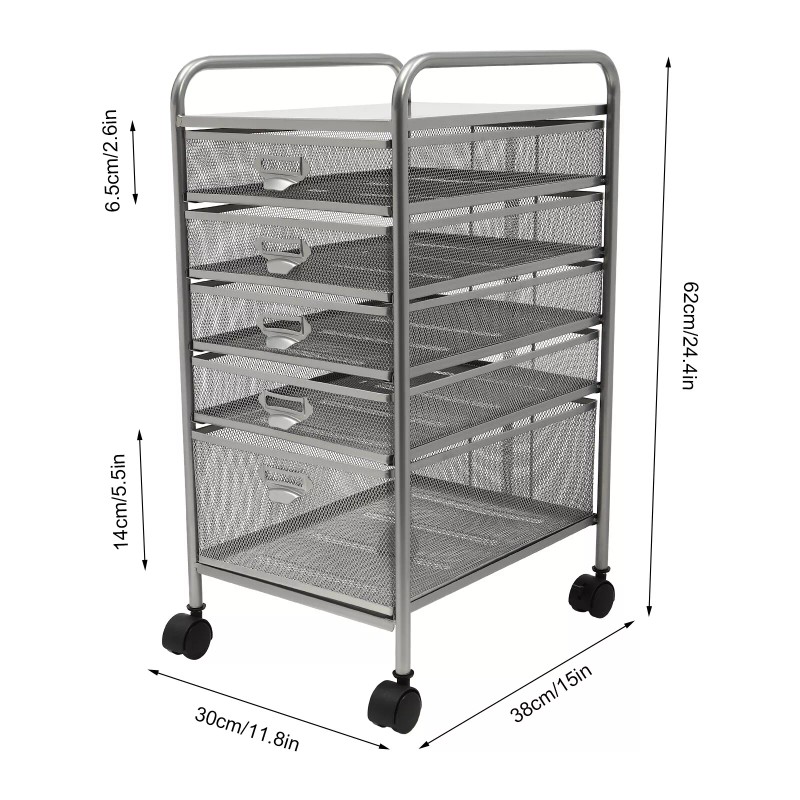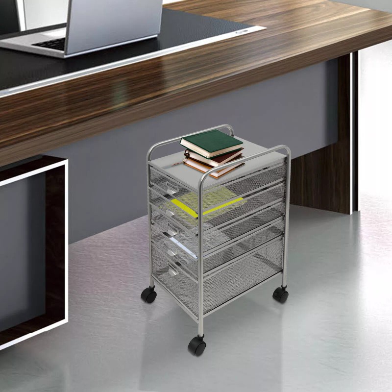 Rolling File Cabinet with 5 Drawers Silver Files Storage Organizer with Wheels