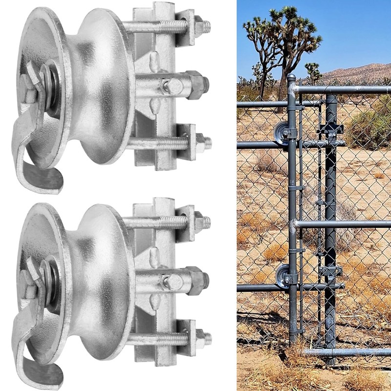 Rolling Gate Wheels, Sliding Gate Rollers, Rear Pipe Track Wheels for 1 7/8" or 1 5/8" Gate Frame x 1 5/8" Pipe Track, Chain Link Sliding Gates Hardware, Pack of 2