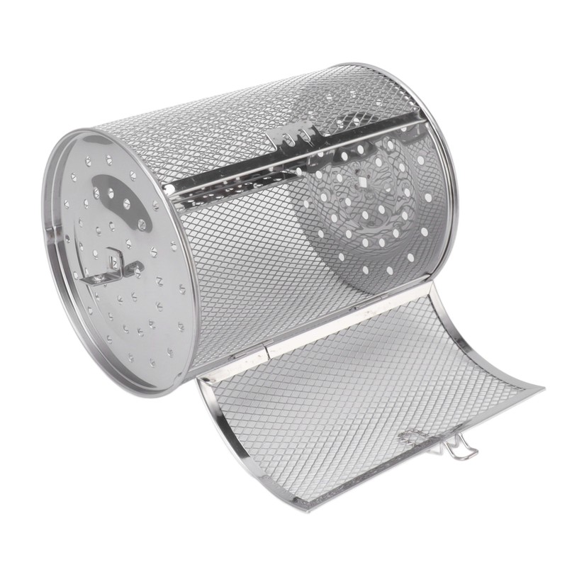 Rolling Grilling Basket Stainless Steel Grill Cage Round Stainless Steel BBQ Grill Mesh for Peanut Dried Nut Vegetables B