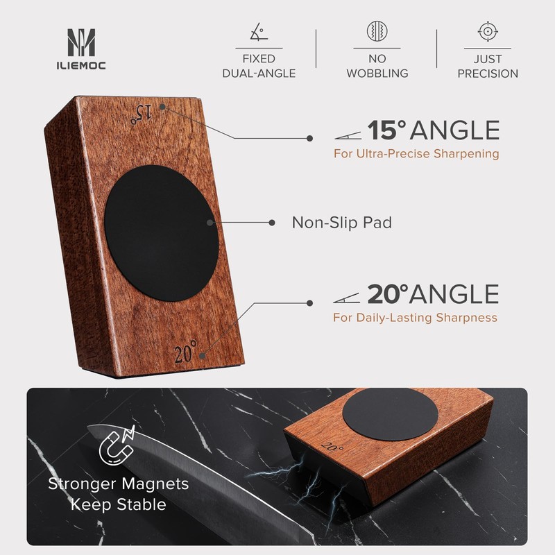 - 【Consistent Angle Sharpening Made Simple】Stronger N48 magnets hold your knife at a fixed 15° or 20° angle for precise edge control—no slipping, no guesswork. Choose 15° for specialty blades like sushi knives or high-carbon steel tools, 20° for everyday kitchen knives.