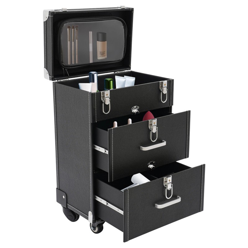 Rolling Makeup Travel Case Nail Tech Suitcase Cosmetic Train Case on Wheels
