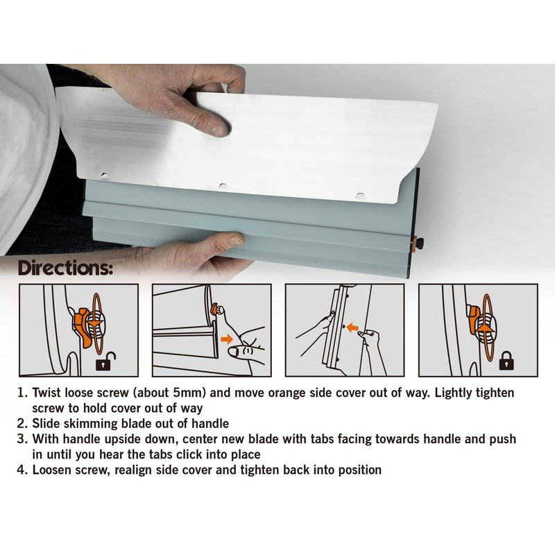 - ERGONOMIC HANDLE WITH REPLACEABLE BLADE: Ergonomic shaped handle with a slotted grip for more control and better hold. Solid and secure blade replacement system with one extra blade included if skimming blade edge is ever damaged