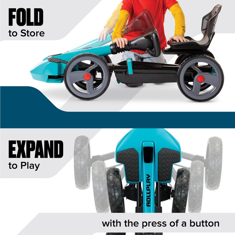 Rollplay Flex Kart XL Pedal Go Kart for Kids Featuring EVA Tires for Traction and Durability, 2-Position Adjustable Bucket Seat, and Easy Push-Button Folding Function for Easy Storage