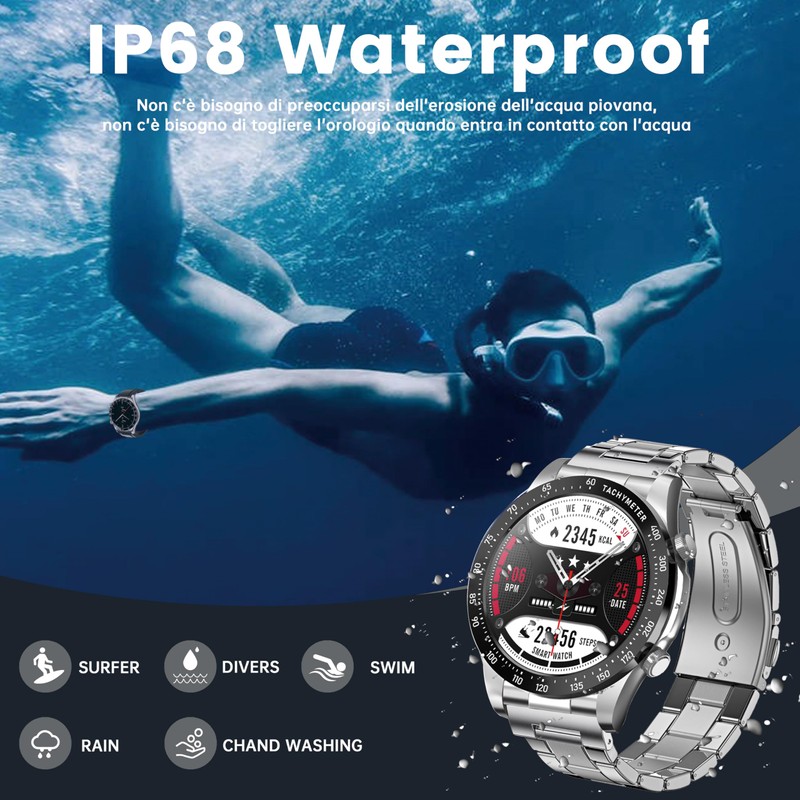 - IP68-WASSERDICHT UND 107 SPORTMODEN :"Keine Angst vor Wassergefahren, verschiedene Sportmodi" Dank der Wasserdichtigkeit nach IP68 ist die Uhr im Alltag und beim Sport vor Wasser geschützt. Die 107 integrierten Sportmodi decken alle Sportarten ab und ermöglichen es Ihnen, Ihre Fitnessaktivitäten umfassend zu überwachen und Ihre Gesundheitsziele zu erreichen, ob im Fitnessstudio, beim Laufen im Freien oder beim Schwimmen.