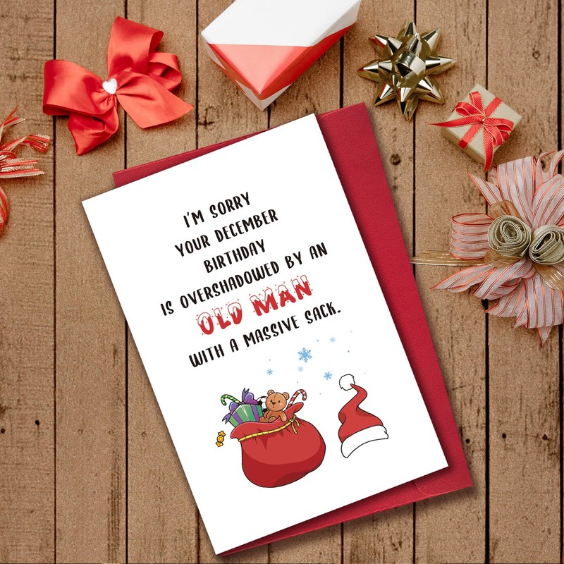 RollupJoy Funny December Birthday Card, Hilarious Christmas Birthday Card for...