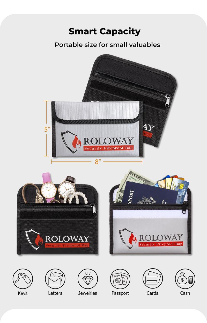 ROLOWAY Small Fireproof Bag (8 x 5 inches) Organiser - Color: Silver & Black
