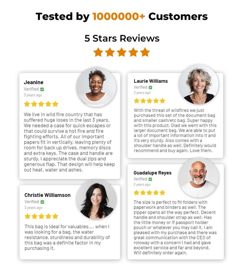- [PERFECTLY FIT JUMBO FIREPROOF BAGS - Honored Product]: We are professional to provide TOP CLASS Fireproof Bags in the market. Our other JUMBO size products have earned GREAT REPUTATION of protecting customer's big size valuables. Now, these 2 PORTABLE Fireproof Money Bags are to protect your small size valuables, they are fitting our JUMBO FIREPROOF BAGS perfectly, and offer the MOST COMPLETE protection TOGETHER in the market.