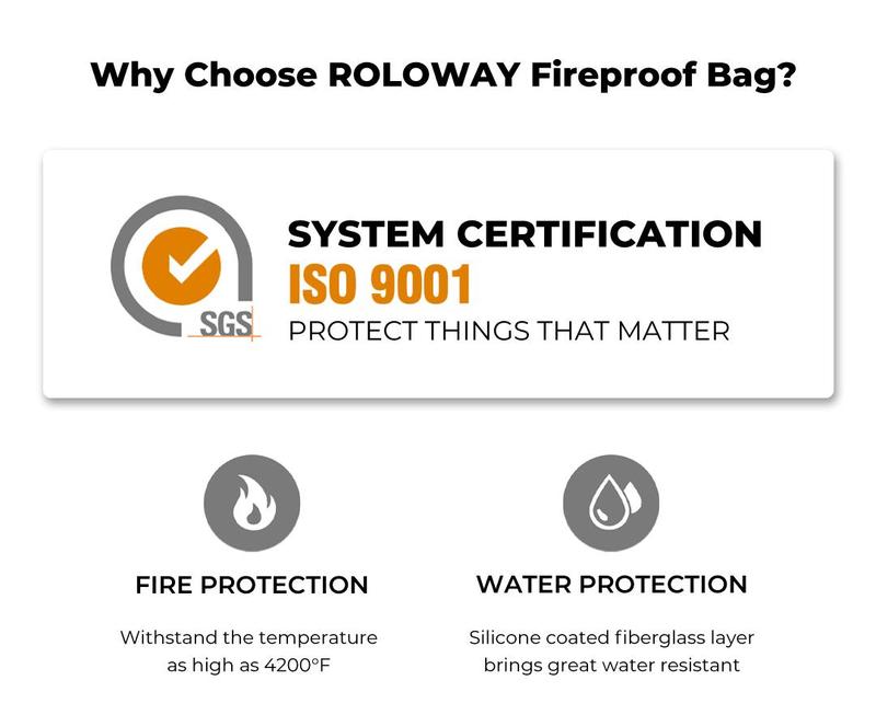 - [FIREPROOF & WATER RESISTANT BAG - Protection in All Conditions]: With dual-layered FIBERGLASS, our Fireproof Money Bag can withstand high temperature in certain times (UL94 VTM-0). Meantime, the SILICONE COATED layers + HOOK & LOOP CLOSURE bring great water protection. Our fireproof bag could survive fire and perform reliable in ALL weather conditions. Suitable for home, office, travel, and EMERGENCY PREPARATION, such as rain storm, hurricane and earthquake.