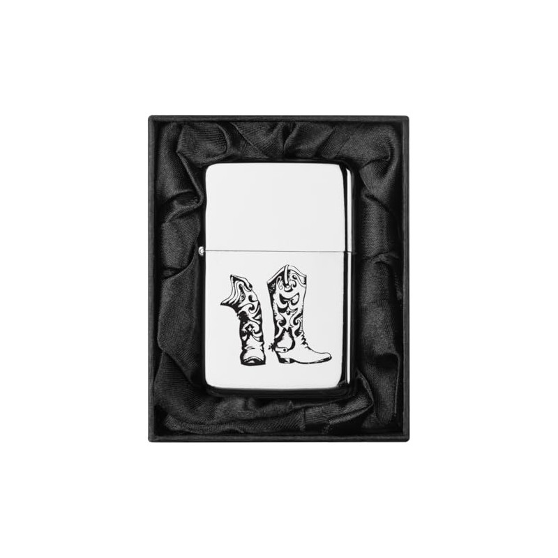 ROLYAD Lighter in Black Silk Lined Gift Box Cowboy Cowgirl Boots (Chrome)