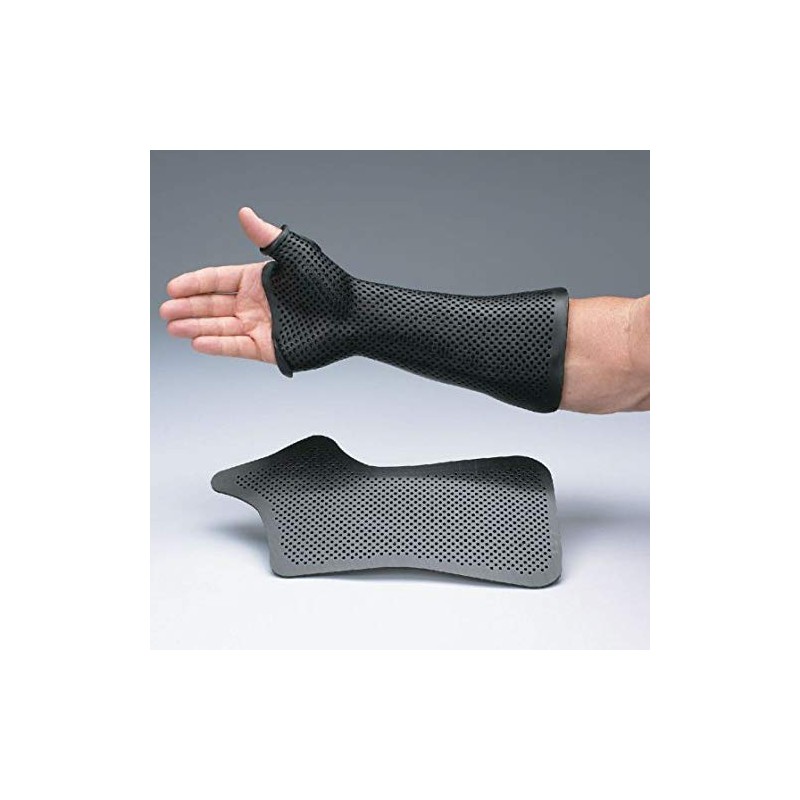 - Fabricated with a perforated pattern to reduce accumulation of perspiration under splint