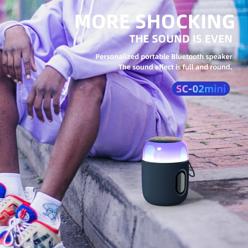 - [Mini Speaker]: Small in size and powerful in sound. This RGB light speaker provides crisp, perfectly balanced sound and enhanced bass for its mini size. Soft knitted touch, smooth body curve design makes it very suitable as a room decoration.