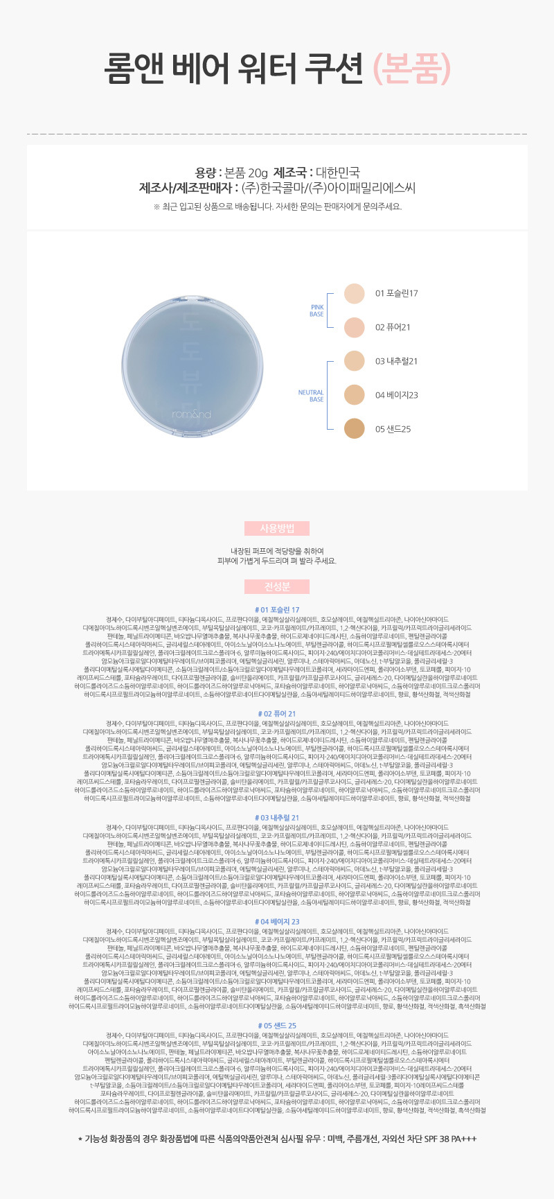 Rom&nd Bare Water Cushion 20g (Main Product) / 롬앤 베어 워터 쿠션 20g (본품)