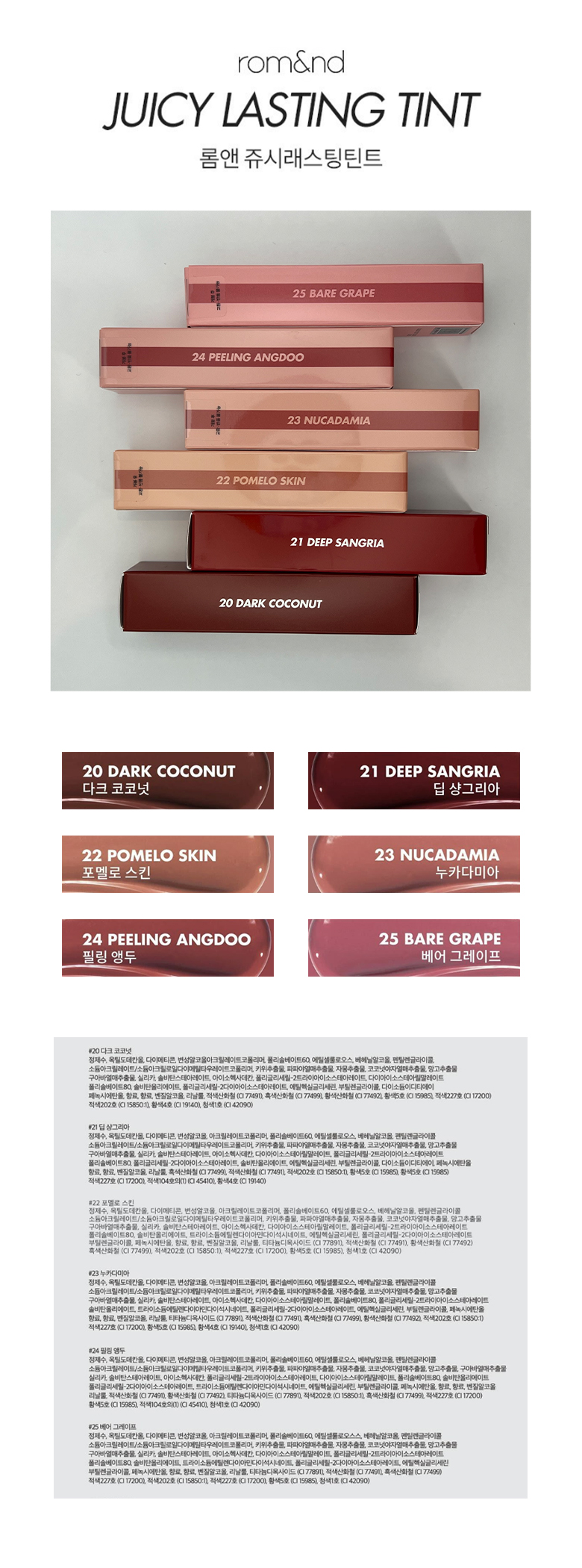 Rom&nd Juicy Lasting Tint 20 Dark Coconut / 롬앤 쥬시 래스팅 틴트 20 다크 코코넛