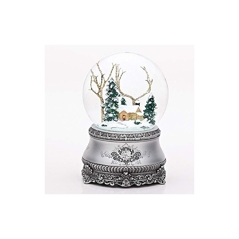 Roman 5.5 Inch Tall Musical Cottage Glitterdome with Silver Base Windup 100MM