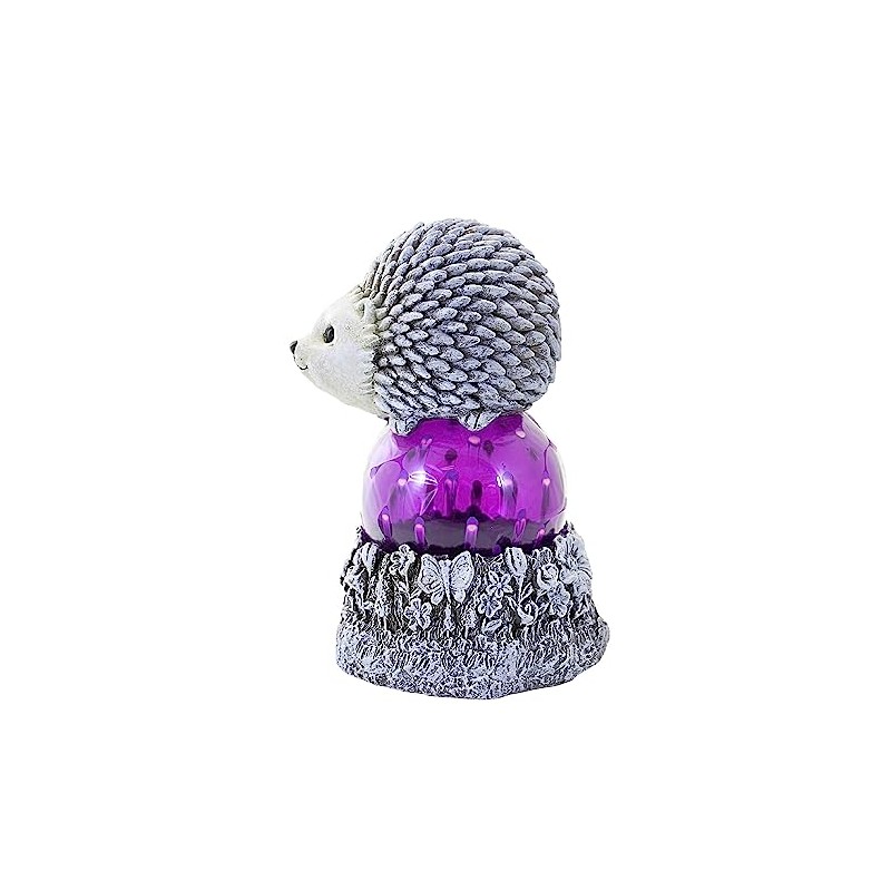 Roman LED Solar Pudgy Pals Garden Statue, Resin, Outdoor Decoration (Hedgehog, 8.5-inch Height)
