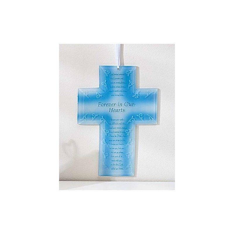Roman Memorial Glass Cross Plaque Forever in Our Hearts Bereavement Gift 59001