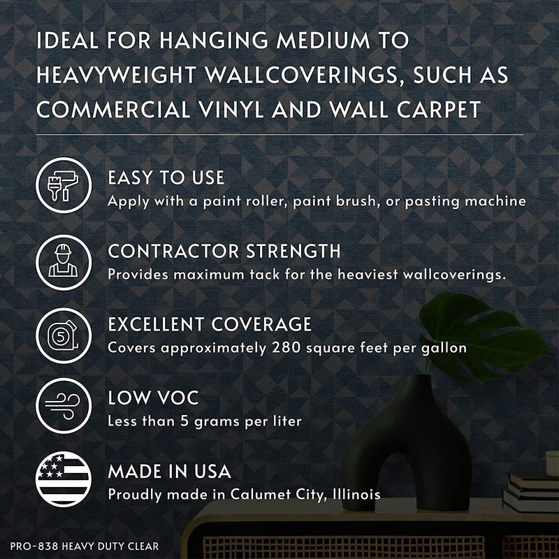 ROMAN PRO-838 Heavy Duty Clear Wallpaper Adhesive, for Commercial Weight Wallcoverings, Wall Carpet, Non-Wovens, and More, 1 Gallon (300 sq. ft.)