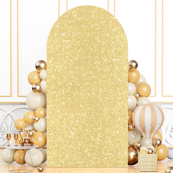 - đ¸ăPackage - Gold Arch Cover 7.2FTă: Include 1 pack shimmer gold wedding arch stand cover measuring 4Ft(120cm) wide and 7.2Ft(216cm) long and does not include round top frame. Spandex arch backdrop covers are available for your birthday party decor needs.