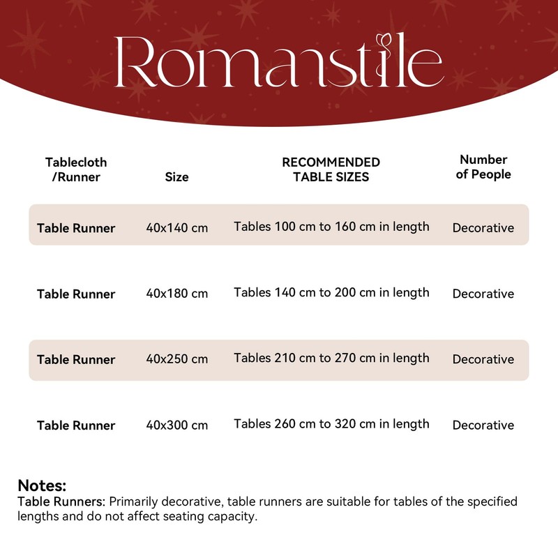 • Perfect fit: 40 cm x 180 cm: fits well on longer tables with a length of about 120 cm to 160 cm and a width of 80 cm to 100 cm. This would be suitable for medium sized dining tables or longer console tables.