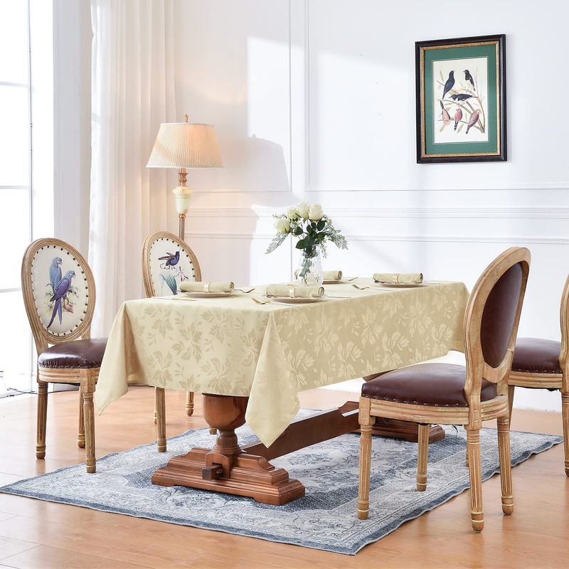 - ELEGANT FLORAL DESIGN: The design of this jacquard table cloth is inspired by flower and leaf in the autumn. The designer integrated floral patterns with luxurious polyester fabric to create a sense of beautiful and delicate feelings in your home.