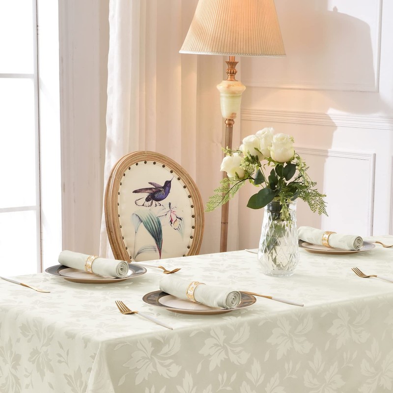 Romanstile Jacquard Rectangle Tablecloth - Waterproof Damask Floral Pattern Decorative Table Cloths Heavy Weight Fabric Table Covers for Dinner/Parties/Holiday- 60 x 120 Inch,Ivory