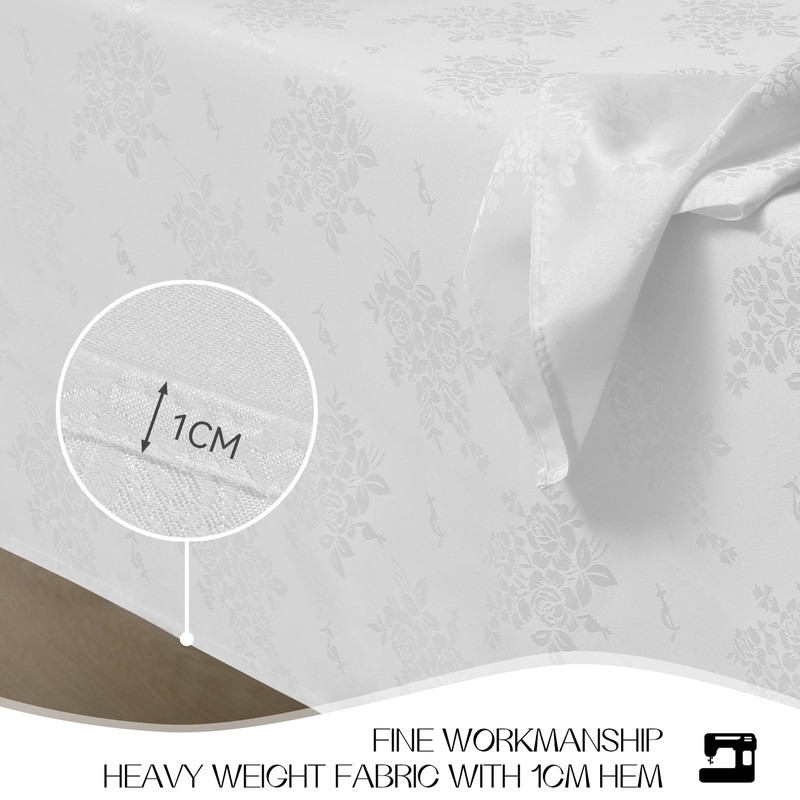 - VERSATILE USES : This durable jacquard tablecloth is suitable for a variety of functional and room decor purposes including dining tables, kitchen, family gatherings, weddings, afternoon tea, catering, cafes, restaurants, brunches, buffets, parties and other indoor/outdoor uses.