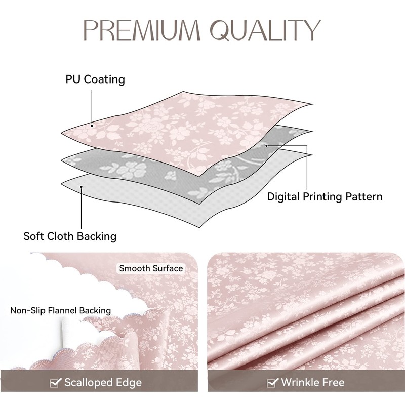 - 【Aesthetic Design】: With an elegant floral pattern and decorative wavy cut edges, the tablecloth adds a stylish and appealing look to any room. Depending on the exposure to light, the woven motif creates a beautiful gloss effect, which contributes to the enhancement of the room aesthetics and creates a pleasant atmosphere.