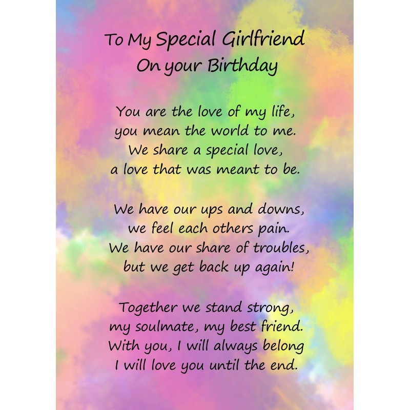 Romantic Birthday Verse Poem Card (Special Girlfriend)