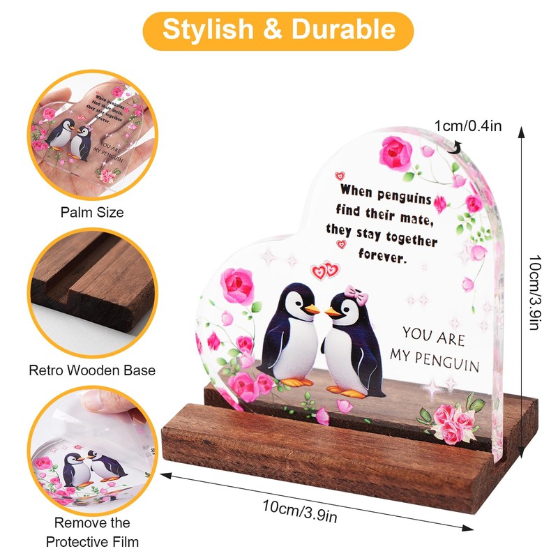 - Touching Engravings & Elegant Patterns - The acrylic plaque features the touching text "When Penguins Find Their Mate, They Stay Together Forever. You Are My Penguin," it includes charming penguin, floral, and heart motifs that won’t fade. A scratch-resistant film covers the product's surface, ensuring it remains in pristine condition.