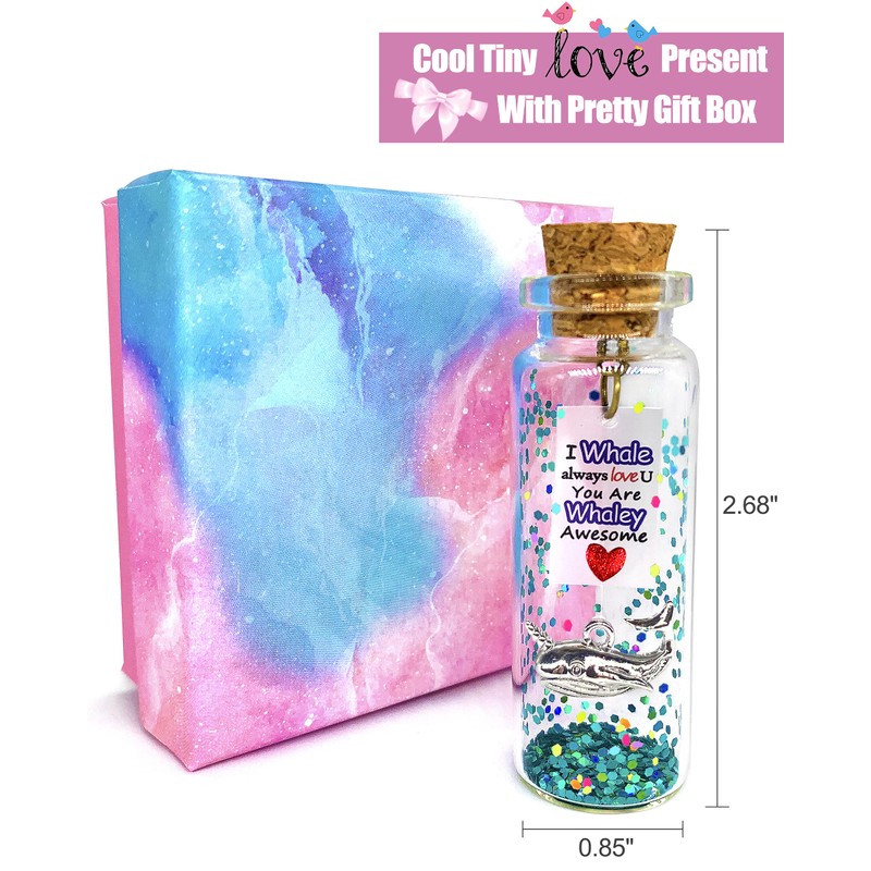 👉 Grab our handmade message glass bottle decorated with a super-small kawaii whale charm hanging inside. This funny whale pun - I whale (will) always love you & You are whaley (very) awesome would make a great gift idea for a whale lover, or someone who appreciates puns and wordplay.