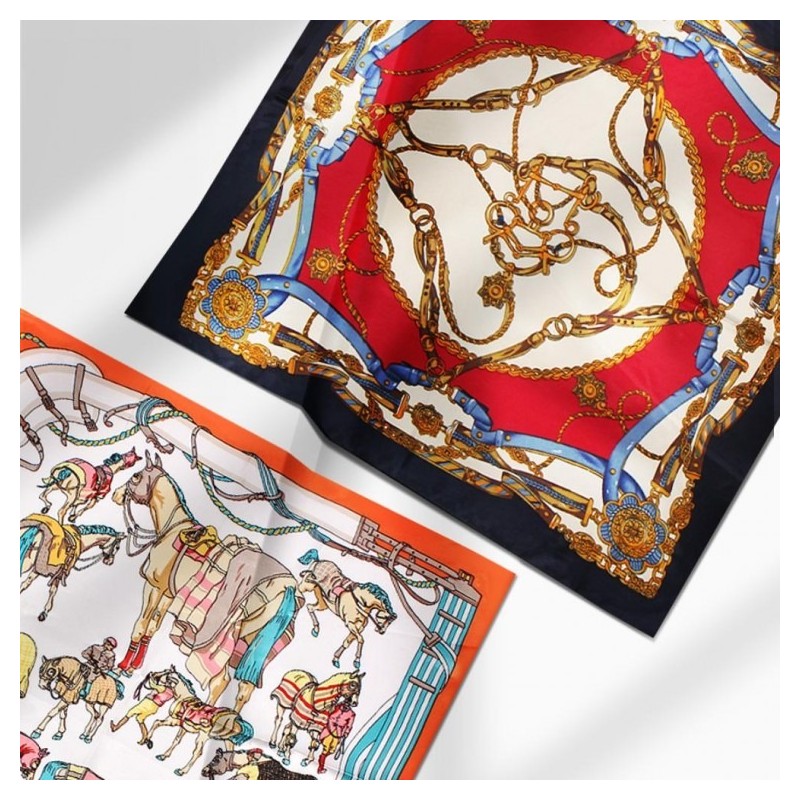 Romantic Silky Petite Scarf Satin Silk Square Muffler Pretty Romantic Square Scarfㅣ/Gold Navy 5ea