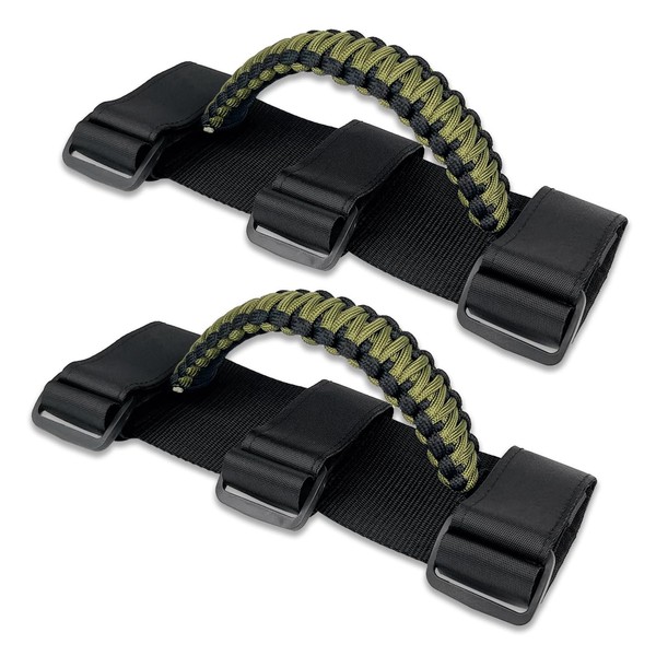 ROMASO Roll Bar Grab Handles for ATV & UTV Roll Cage Grab Bar Handles Adjustable Soft Paracord Handles for 1.5"-2" Bars,2 Pack (Black&Olive)