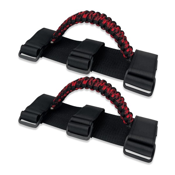 ROMASO Roll Bar Grab Handles for ATV & UTV Roll Cage Grab Bar Handles Adjustable Soft Paracord Handles for 1.5"-2" Bars,2 Pack (Mixed Black&Red)