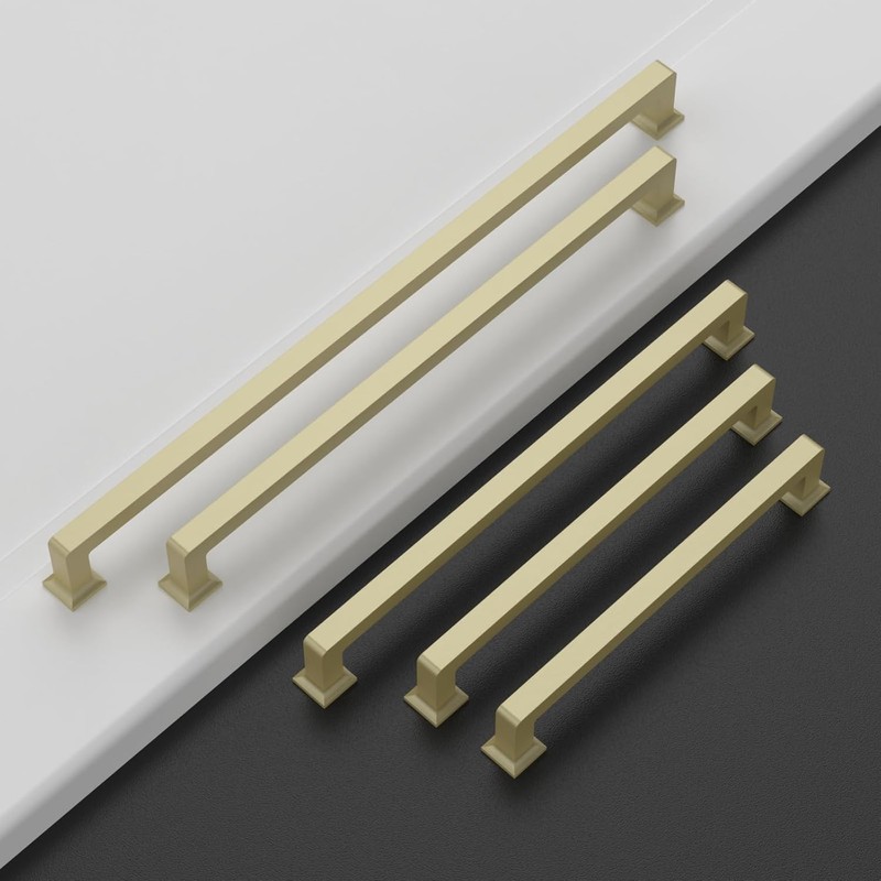 - 【Sturdy Material】This kitchen cabinet handle is made of solid zinc alloy with brushed gold finished, which is not easy to rust and can be used for a long time. The deep thread design makes the handle not easy to loosen and fall off. Any quality issues, please let us know and we are willing to help you solve them.