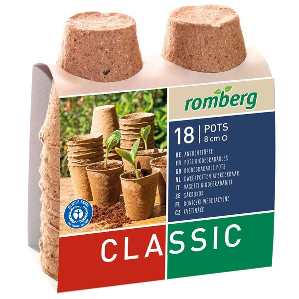 Romberg Classic Cultivation Pots Round Diameter 8 cm (Pack of 18, Biodegradable, Peat-Free, Easy to Use) 10091101
