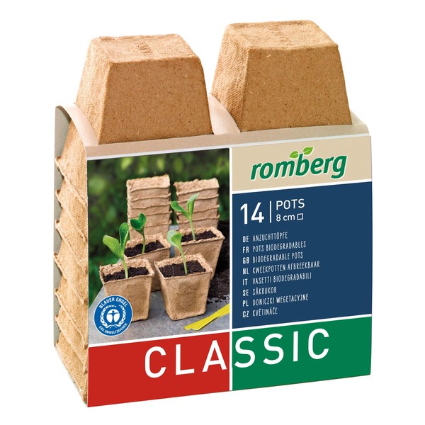 Romberg Classic Square Cultivation Pots 8 x 8 cm (Pack of 14, Biodegradable, Peat-Free, Easy to Use) 10091106