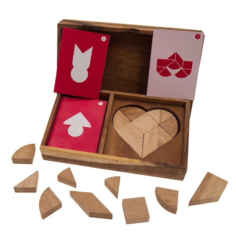 ROMBOL Variants of the Tangram Game for 2 People, Wood, Tile Game, Wooden Game, Thinking Game, Puzzle Game, Wooden Patience Game, Model: Heart