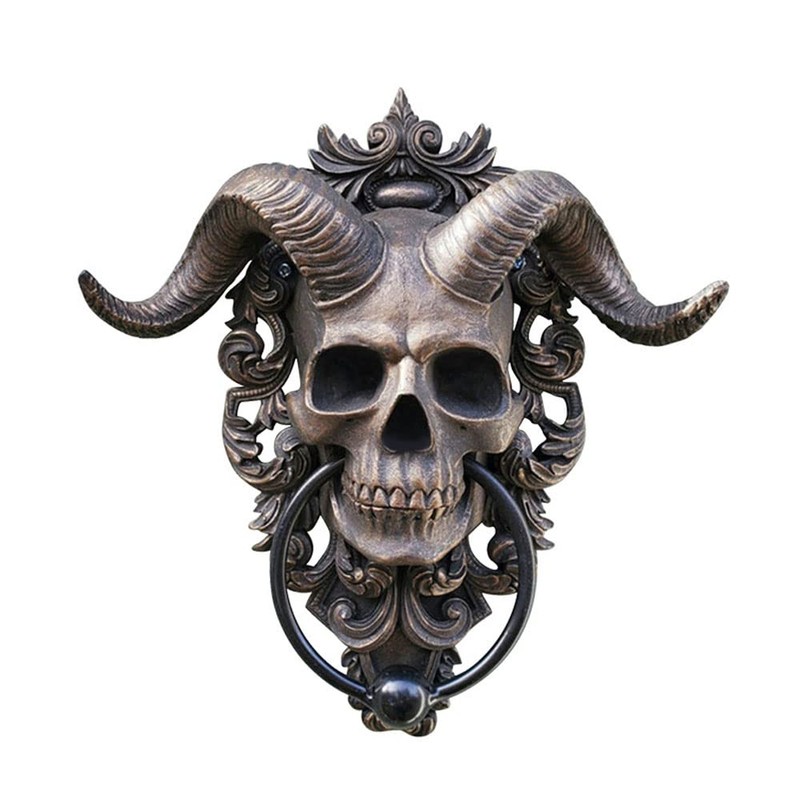 Romeeton Satan Skull Head Door Knocker Resin Goat-headed Wall Hang Ornament Gothic Decoration (Large)