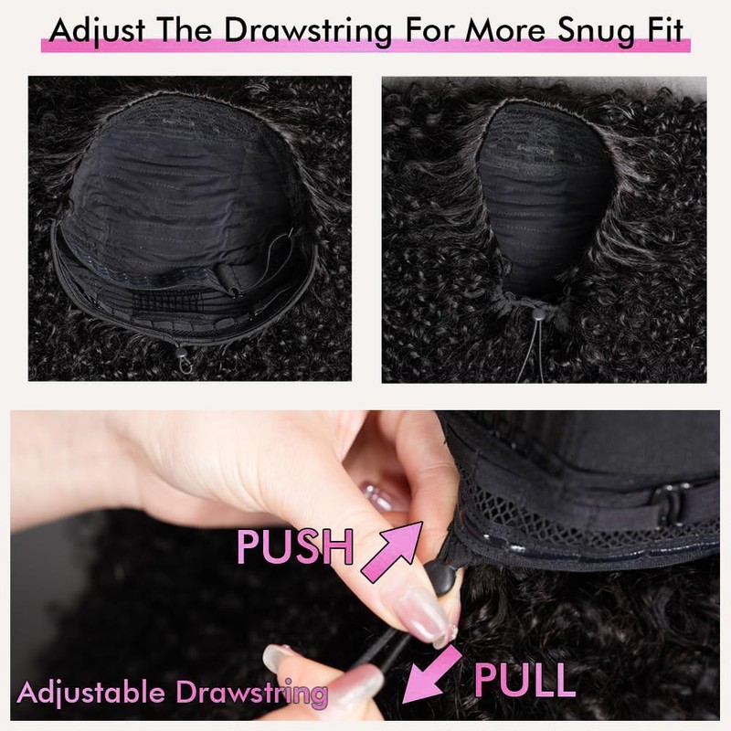 - Revolutionary Glueless Design: Upgraded with an adjustable drawstring cap (21"-23"), this lace-free design ensures a secure, personalized fit in seconds. The invisible weft-edge technology mimics natural hairlines, while the glue-free system allows painless removal—perfect for sensitive scalps.