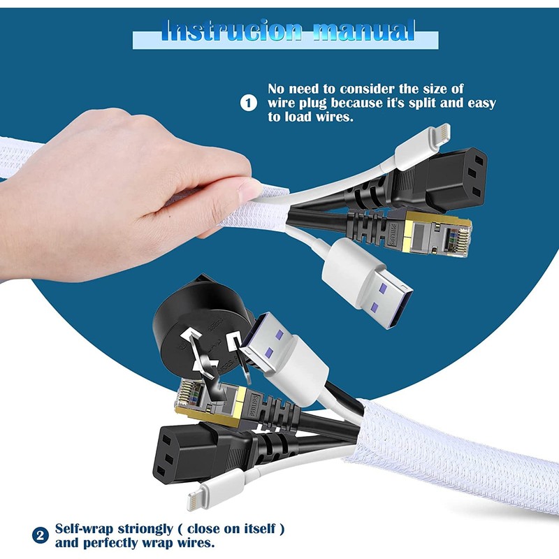 - Self-closing design: cable hose can be flexibly adjusted, diameter range 13-22 mm, can hold 3 power cables (6.5 mm) + 7-8 data cables (3-3.5 mm). The braided hose spiral hose of the side opening closes independently and can be inserted without removing the cable.